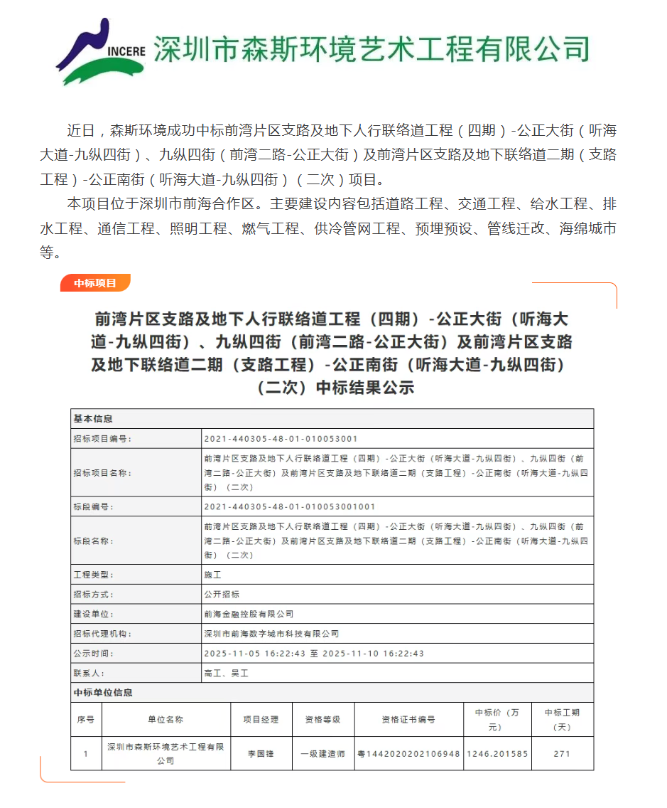 中标喜讯 | 森斯环境中标前海项目!