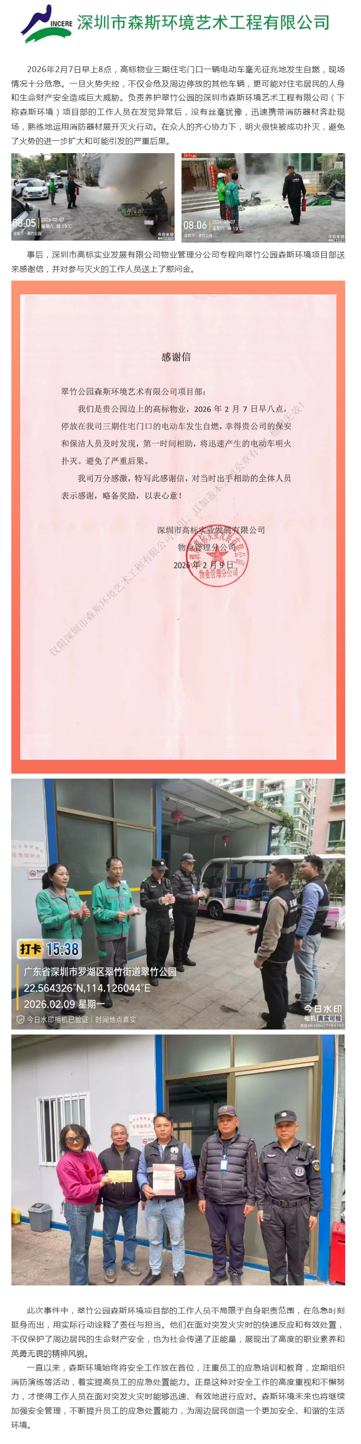 森斯环境员工英勇灭火,彰显责任担当获赞誉